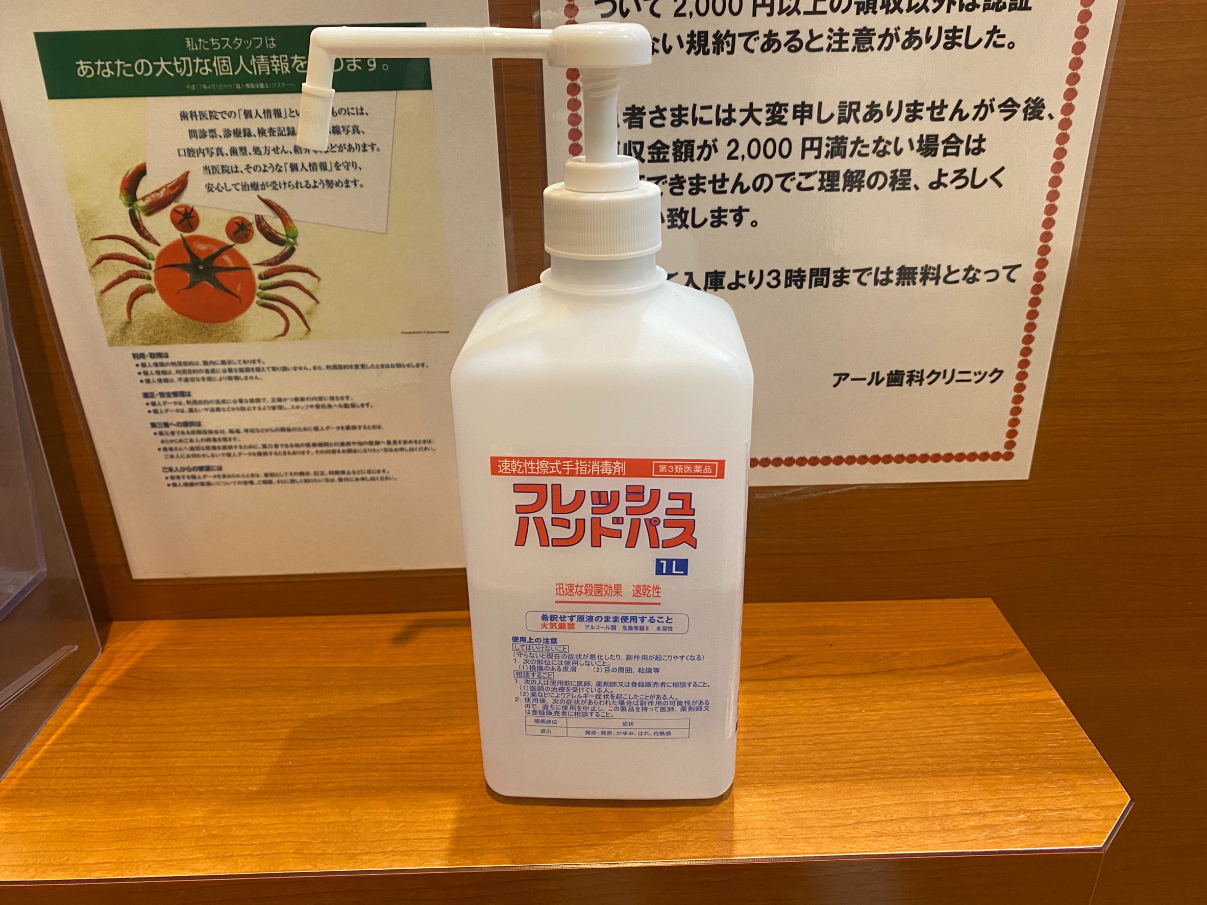 患者様に手指の消毒をして頂き、場合によっては体温測定をして頂きます。