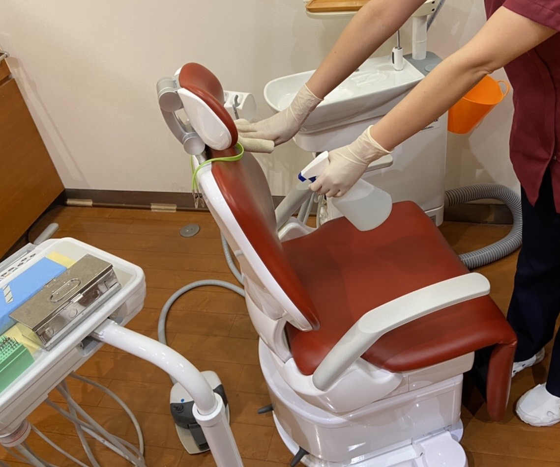患者様の診療が終わる度に、診療チェアーの消毒を行っています。